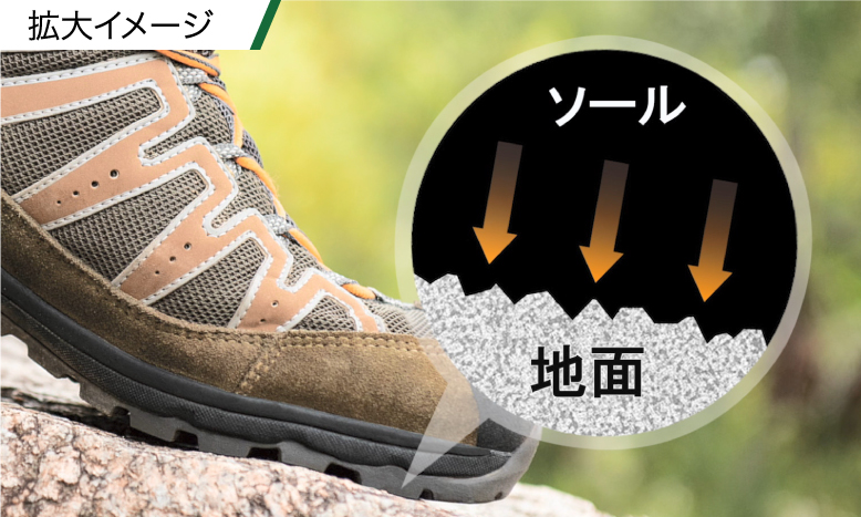 日本のフィールドを安全・快適に踏破するために―。 優れたグリップ力を発揮するオリジナルソール