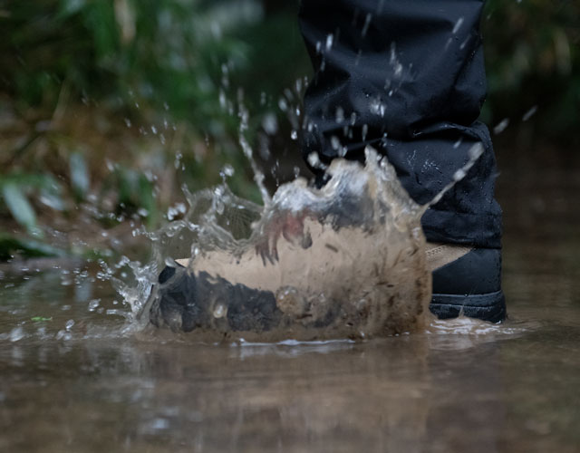 足が濡れると、不快なだけでなく靴擦れの原因にもなり、また冬季には凍傷の危険性もあるので、靴内部をドライに保つことは重要です。